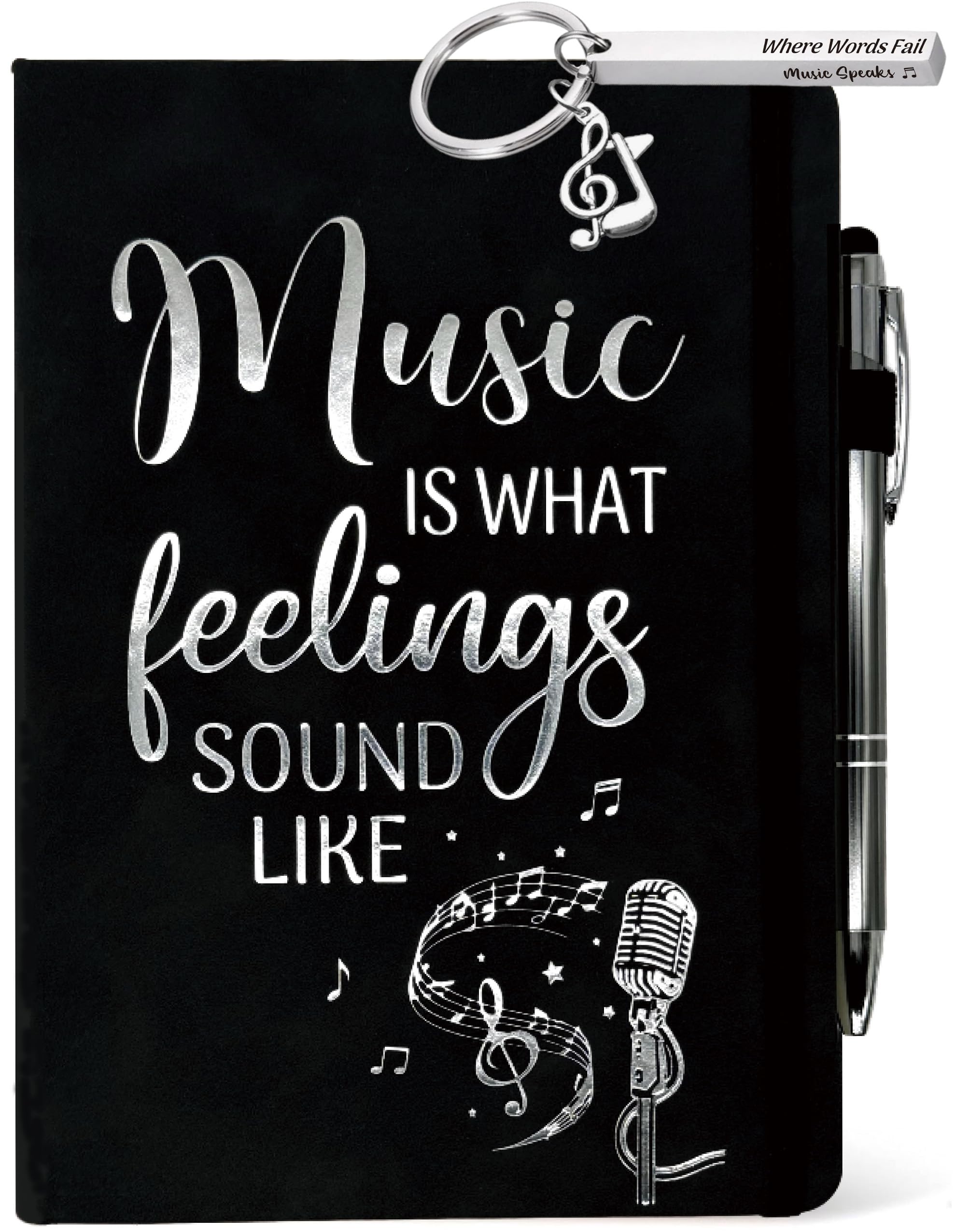 This music-themed gift set offers practical and thoughtful items for music lovers who enjoy writing and staying inspired.